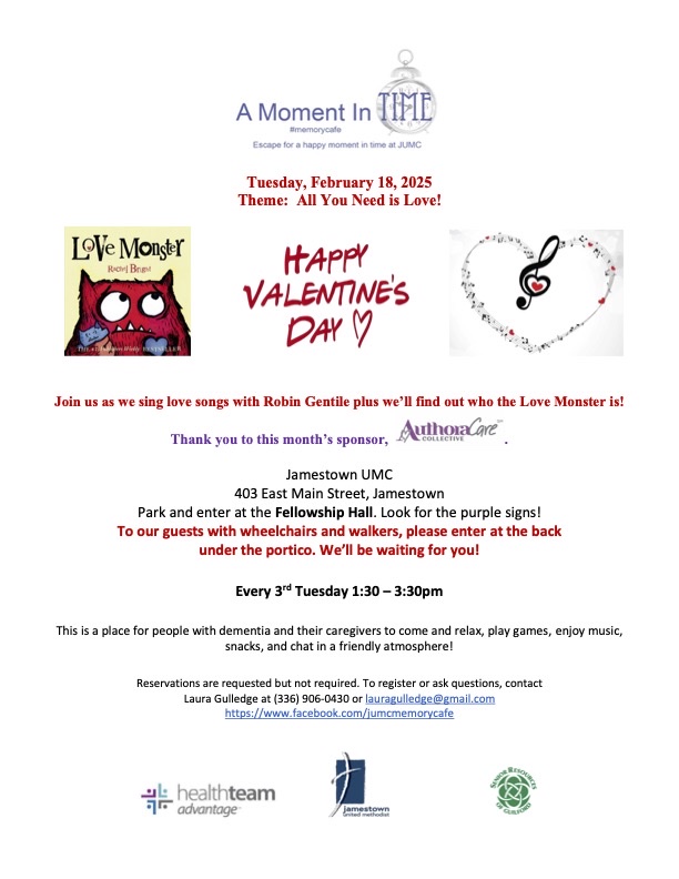 A Moment in Time is a social gathering of people with any form or stage of dementia as well as their Care Partner. It is a stigma free environment to gather, share and enjoy activities and refreshments with people who are going through the same thing.