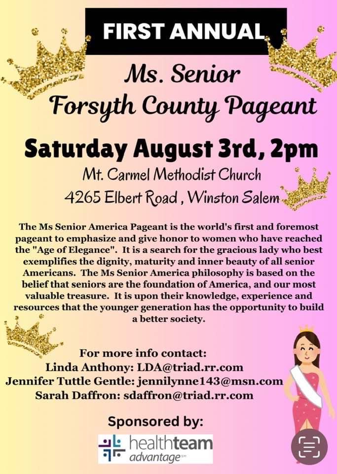 Location: Mt. Carmel Methodist Church (4265 Elbert Road, Winston Salem)