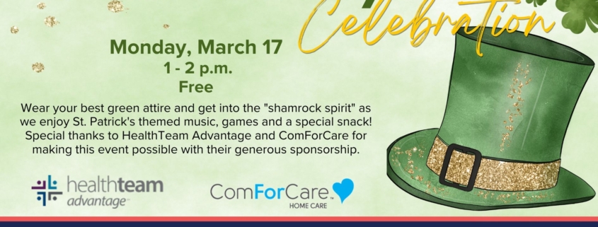 Wear your best green attire and get into the “shamrock spirit” as we enjoy St. Patrick’ s-themed music, games, and a special snack!